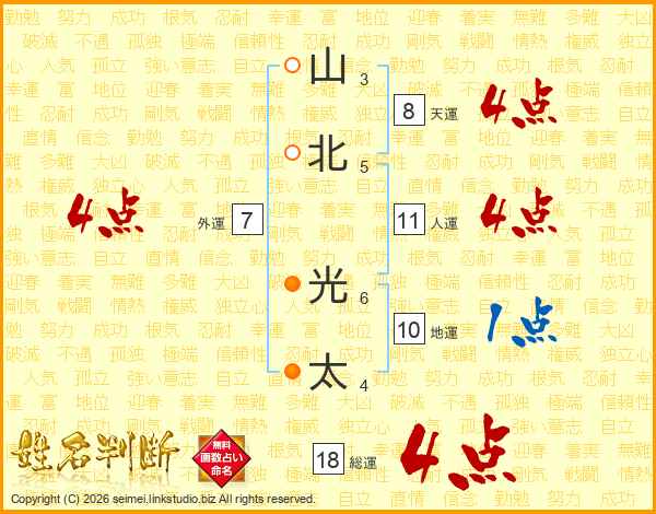 山北光太さんの総運は18画の4点!