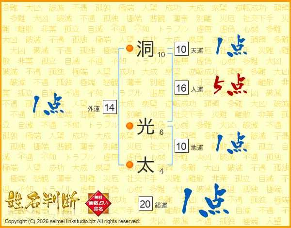洞光太さんの総運は20画の1点!