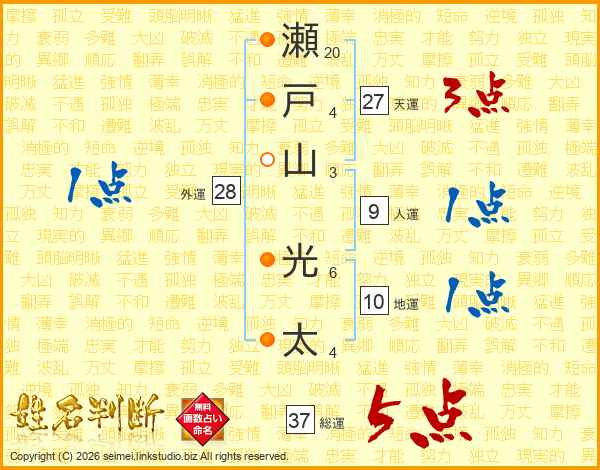 瀬戸山光太さんの総運は37画の5点!