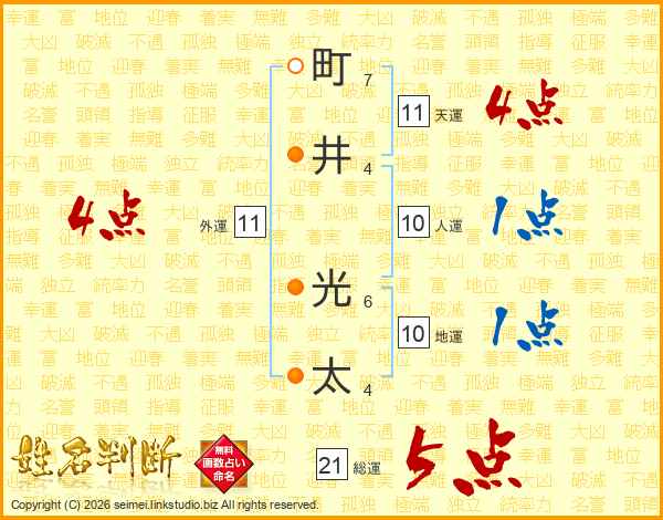 町(7画)井(4画) 光(6画)太(4画)