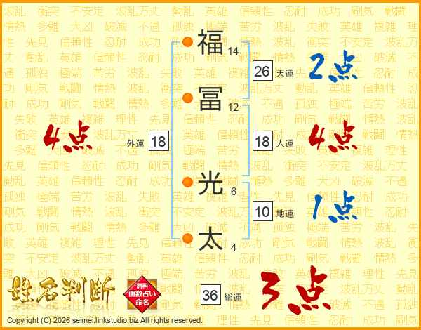 福冨光太さんの天運は26画の2点!
