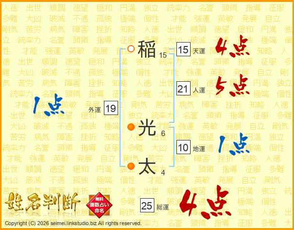 稲(15画) 光(6画)太(4画)