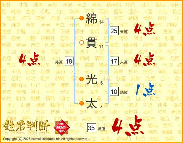 綿貫光太さんの天運は25画の4点!