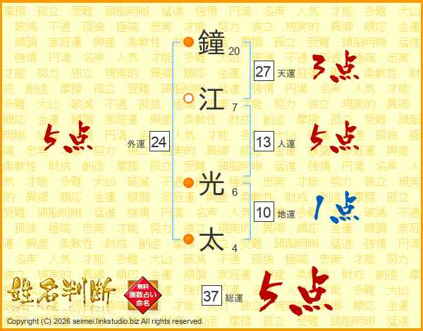 鐘江光太さんの総運は37画の5点!