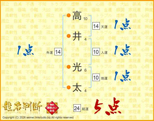 高井光太さんの総運は24画の5点!