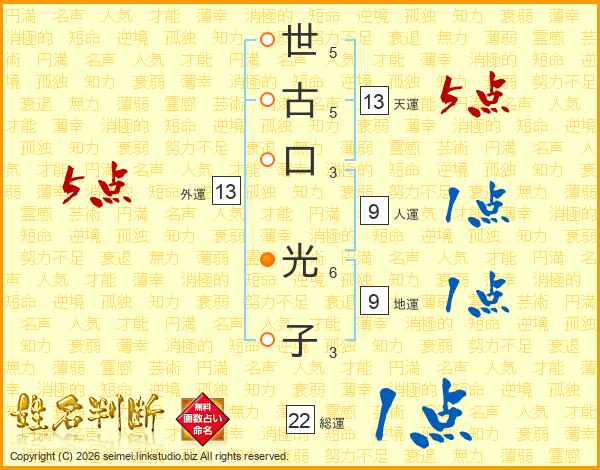 世古口光子さんの天運は13画の5点!