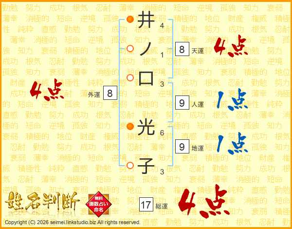 井ノ口光子さんの総運は17画の4点!