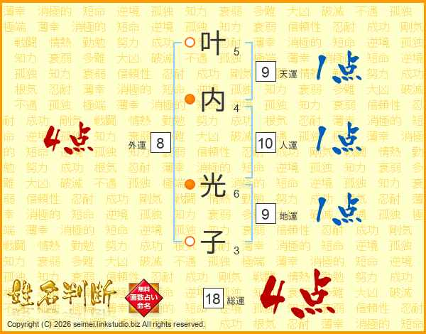 叶内光子さんの総運は18画の4点!