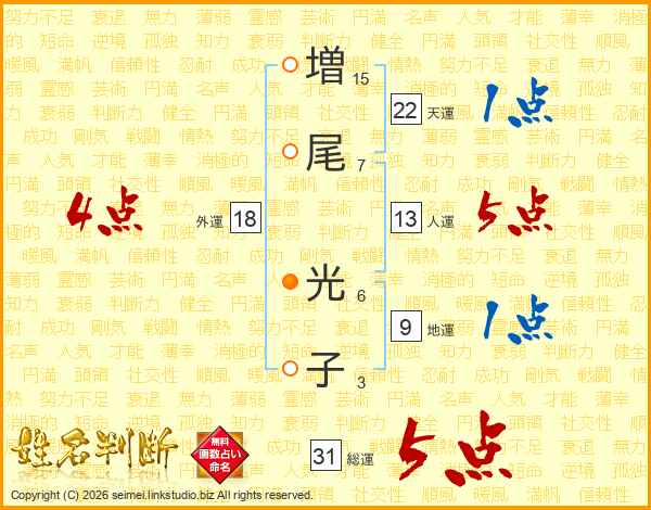 増(15画)尾(7画) 光(6画)子(3画)