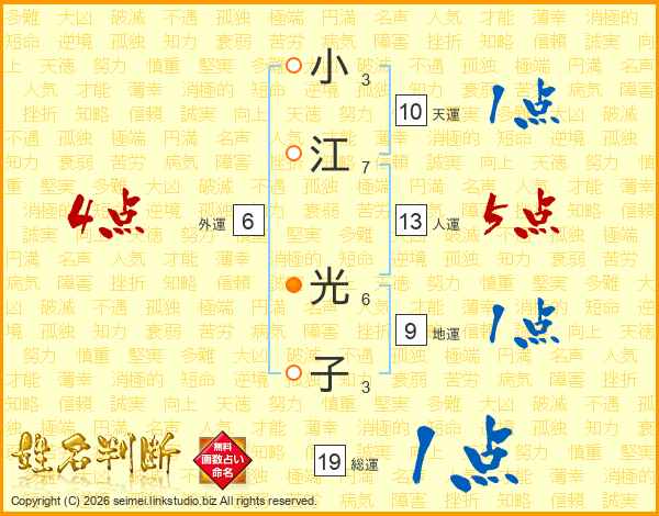 小江光子さんの総運は19画の1点!
