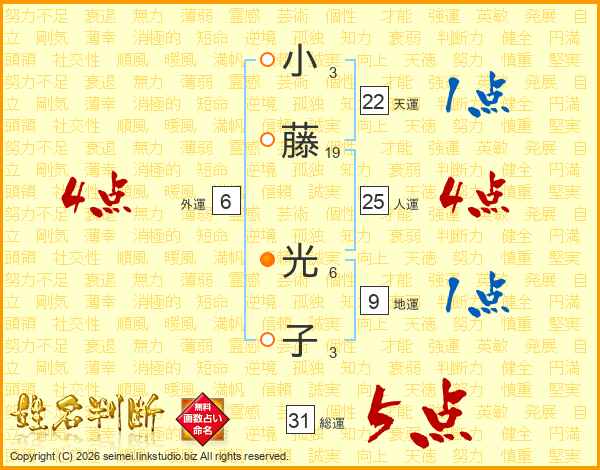 小藤光子さんの総運は31画の5点!