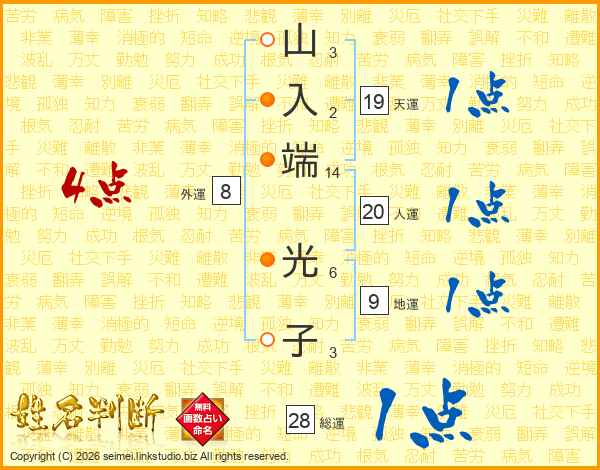 山(3画)入(2画)端(14画) 光(6画)子(3画)