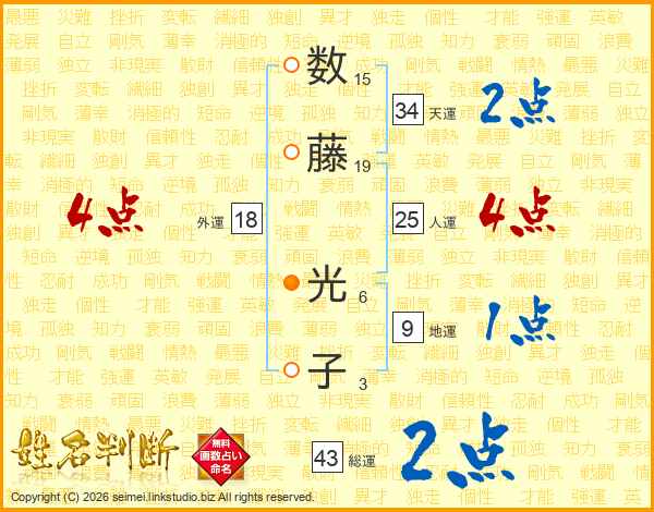 数藤光子さんの天運は34画の2点!