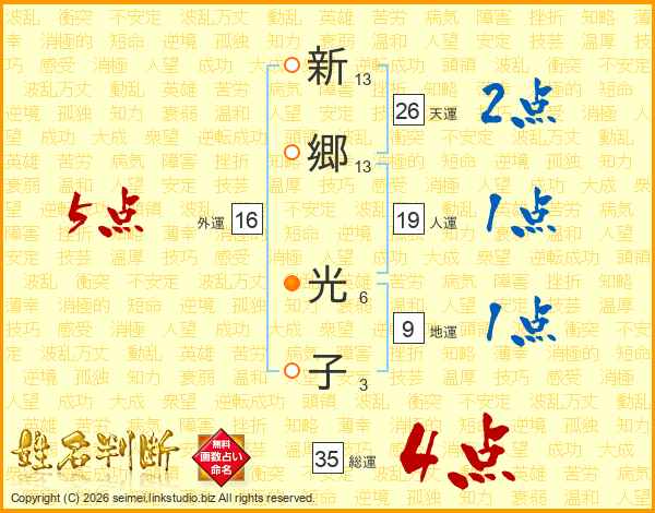 新郷光子さんの総運は35画の4点!
