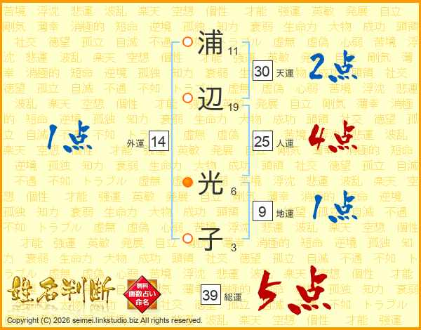浦辺光子さんの総運は39画の5点!