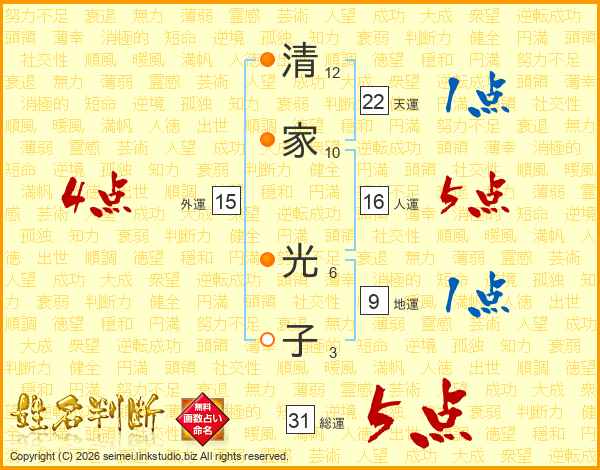 清家光子さんの総運は31画の5点
