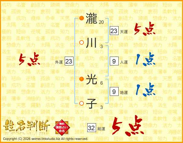 瀧川光子さんの総運は32画の5点!