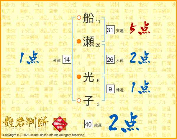 船瀬光子さんの外運は14画の1点!