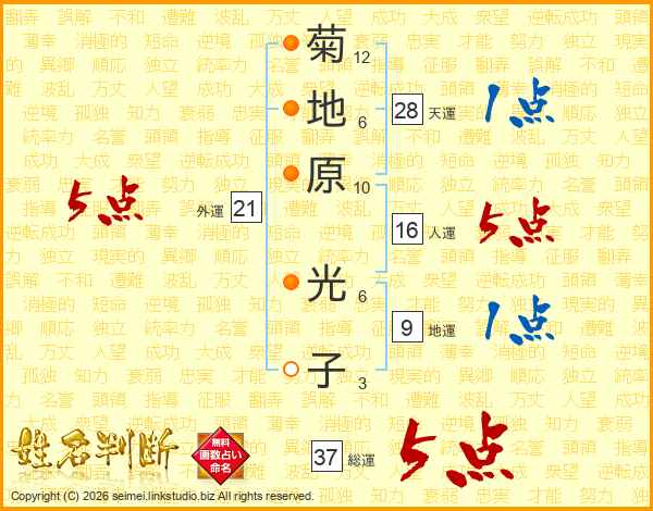 菊(12画)地(6画)原(10画) 光(6画)子(3画)