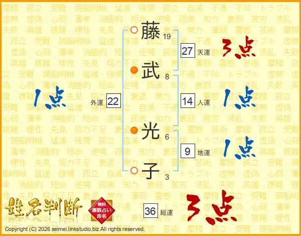 藤(19画)武(8画) 光(6画)子(3画)