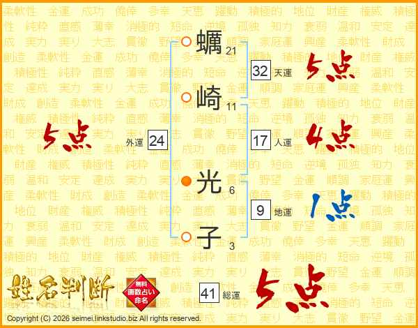 蠣崎光子さんの総運は41画の5点!