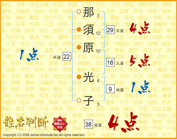 那(7画)須(12画)原(10画) 光(6画)子(3画)