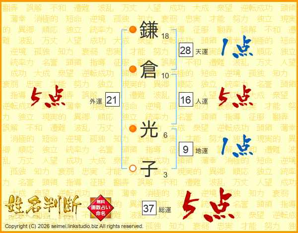 鎌倉光子さんの総運は37画の5点!