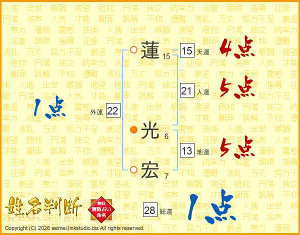蓮光宏さんの総運は28画の1点!