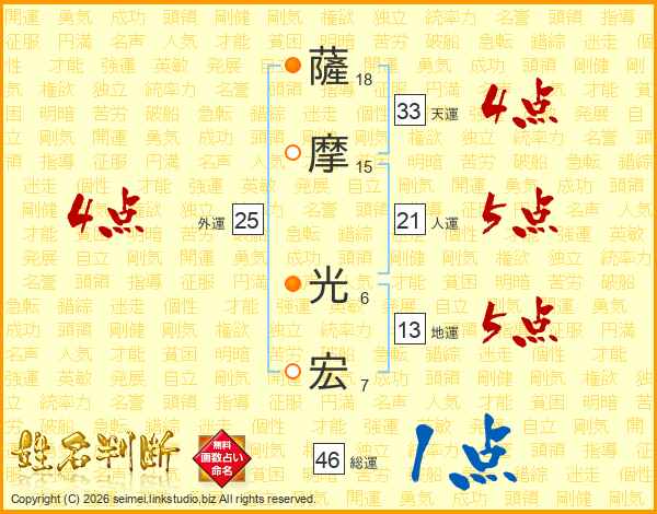 薩(18画)摩(15画) 光(6画)宏(7画)