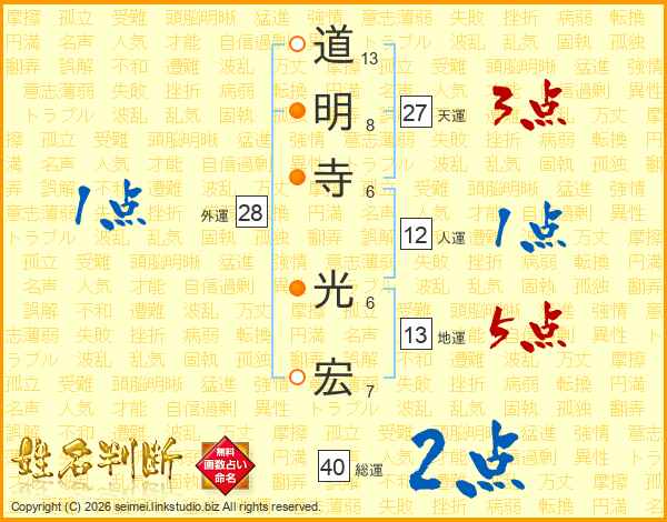 道明寺光宏さんの総運は40画の2点!