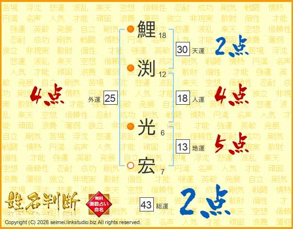 鯉渕光宏さんの総運は43画の2点!