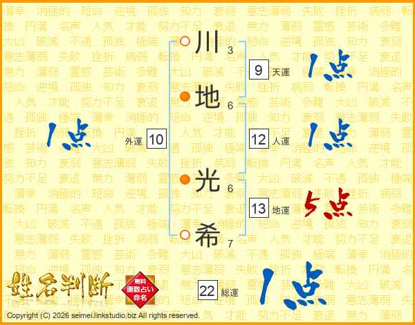 川地光希さんの地運は13画の5点!