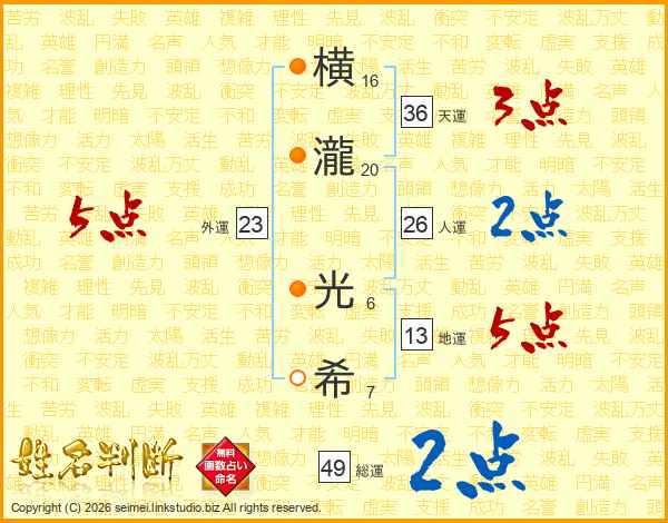 横瀧光希さんの総運は49画の2点!