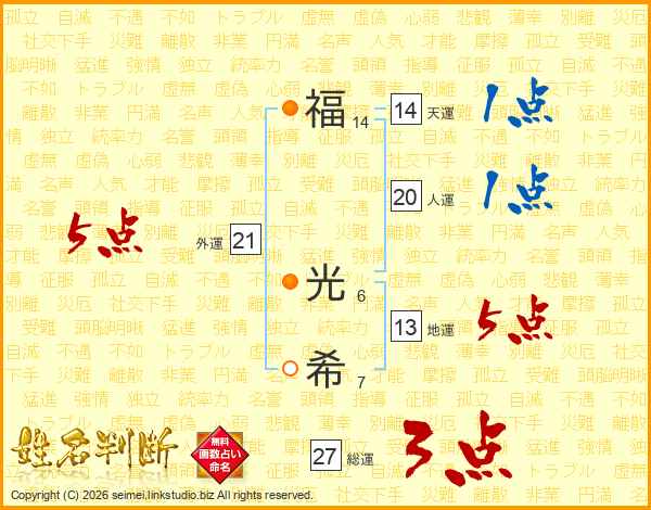 福(14画) 光(6画)希(7画)