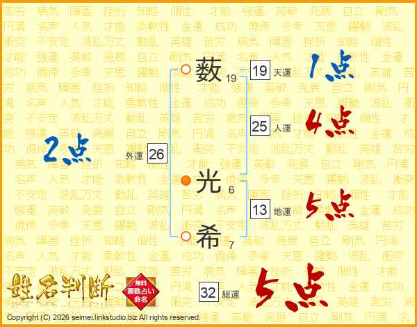 薮光希さんの総運は32画の5点!