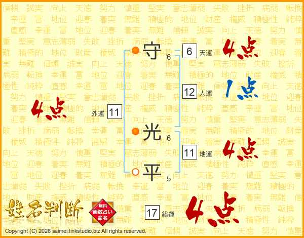 守光平さんの地運は11画の4点!