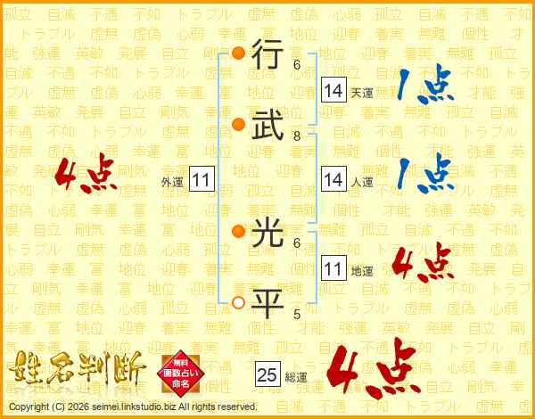 行武光平さんの総運は25画の4点!