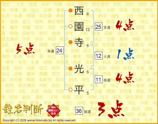 西園寺光平さんの総運は36画の3点!