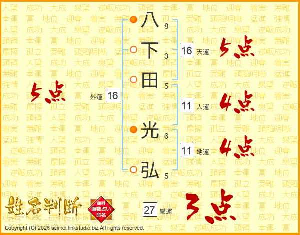 八(8画)下(3画)田(5画) 光(6画)弘(5画)