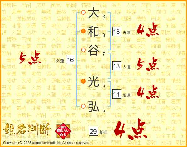 大(3画)和(8画)谷(7画) 光(6画)弘(5画)