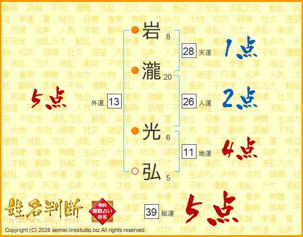 岩瀧光弘さんの総運は39画の5点!
