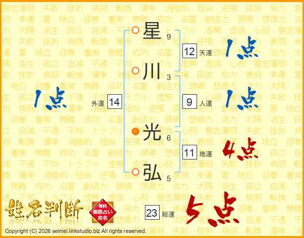 星川光弘さんの総運は23画の5点!
