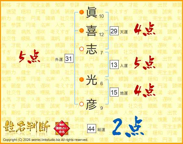 眞(10画)喜(12画)志(7画) 光(6画)彦(9画)