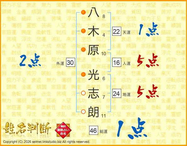八木原光志朗さんの総運は46画の1点!