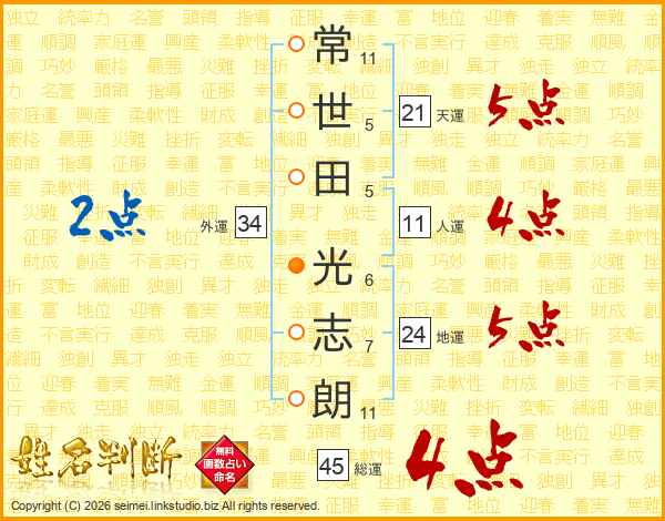 常世田光志朗さんの総運は45画の4点!