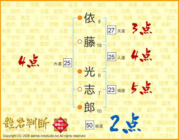 依(8画)藤(19画) 光(6画)志(7画)郎(10画)