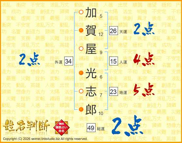 加賀屋光志郎さんの天運は26画の2点!