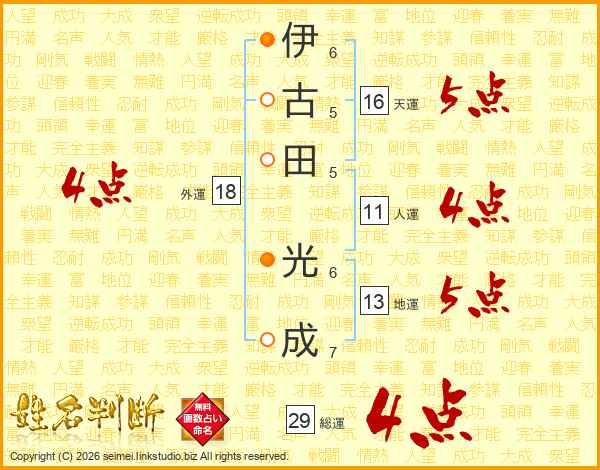 伊古田光成さんの総運は29画の4点!
