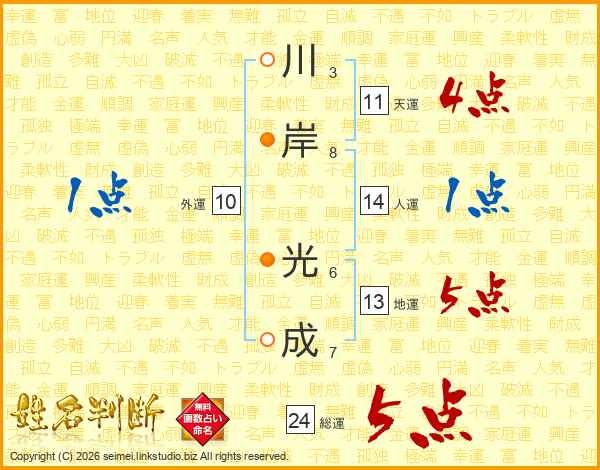川岸光成さんの総運は24画の5点!