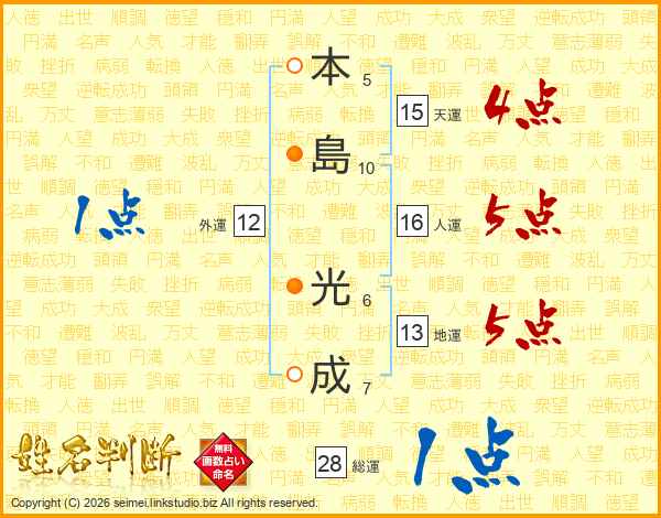 本島光成さんの人運は16画の5点!
